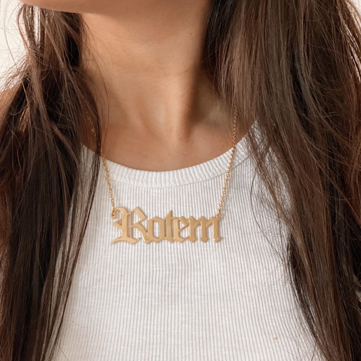 שרשרת שם בפונט גותי עתיק - ע נ ק י ת - ודומיננטית.